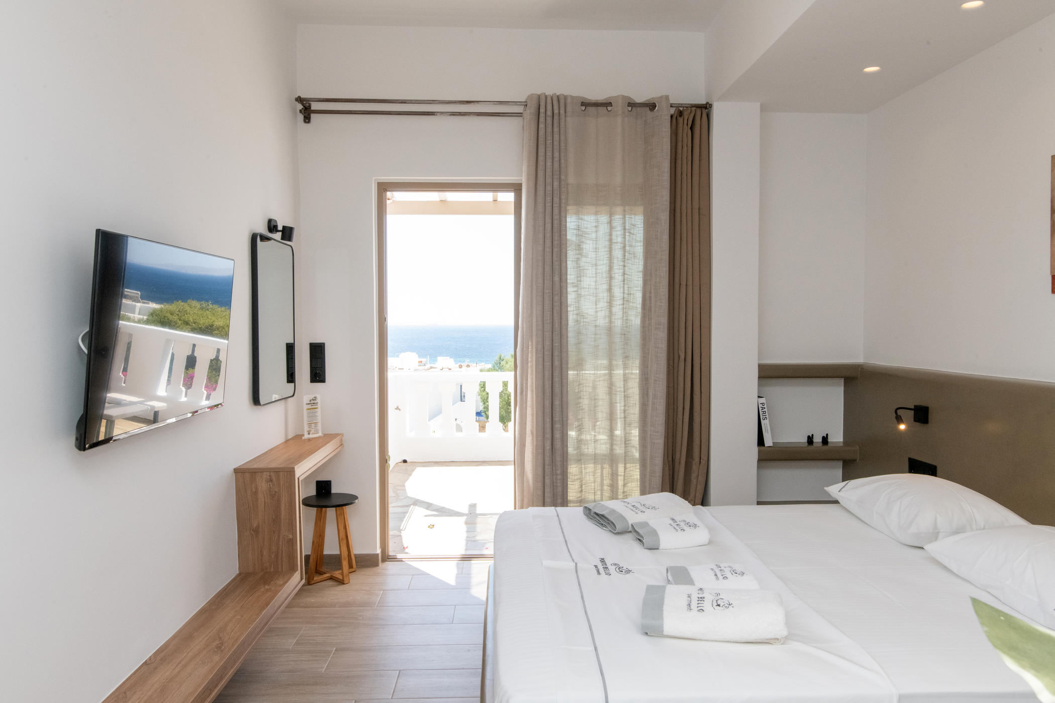 Απογειώστε τη διαμονή σας στην Τήνο στο Superior δωμάτιο στο Porto Bello. Βρίσκεται στο γραφικό Πόρτο του Αγίου Ιωάννη και προσφέρει ένα πολυτελές καταφύγιο, όπου κάθε λεπτομέρεια είναι σχεδιασμένη για να ξεπεράσει τις προσδοκίες σας.